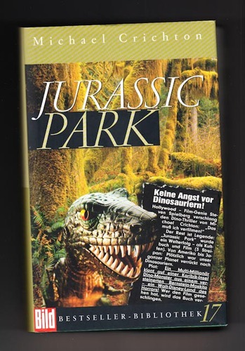 Das Buch zu Jurassic Park entdecke ich durch Zufall auf einem Ramschverkauf. Ich hatte Glück und durfte es (und andere) umsonst mitnehmen und meine private Bücherei weiter füttern.